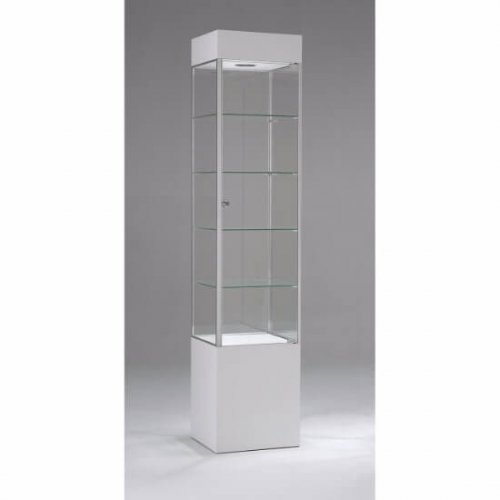 Mid Atlantic Store Fixtures carries top of the line Tower Display Cases. These tower's feature four tempered glass shelves which provide a (4)12"x 12" area to display all your best merchandise. Most retailers will use the Tower Displays for their best , highest quality merchandise. Space is small in these towers but for what it lacks in space the display/view is perfect at all angles!
